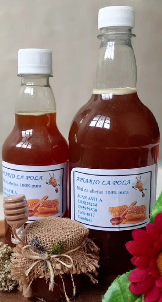 Miel de abejas 100% natural, recolectada en las montañas de Guaduas.